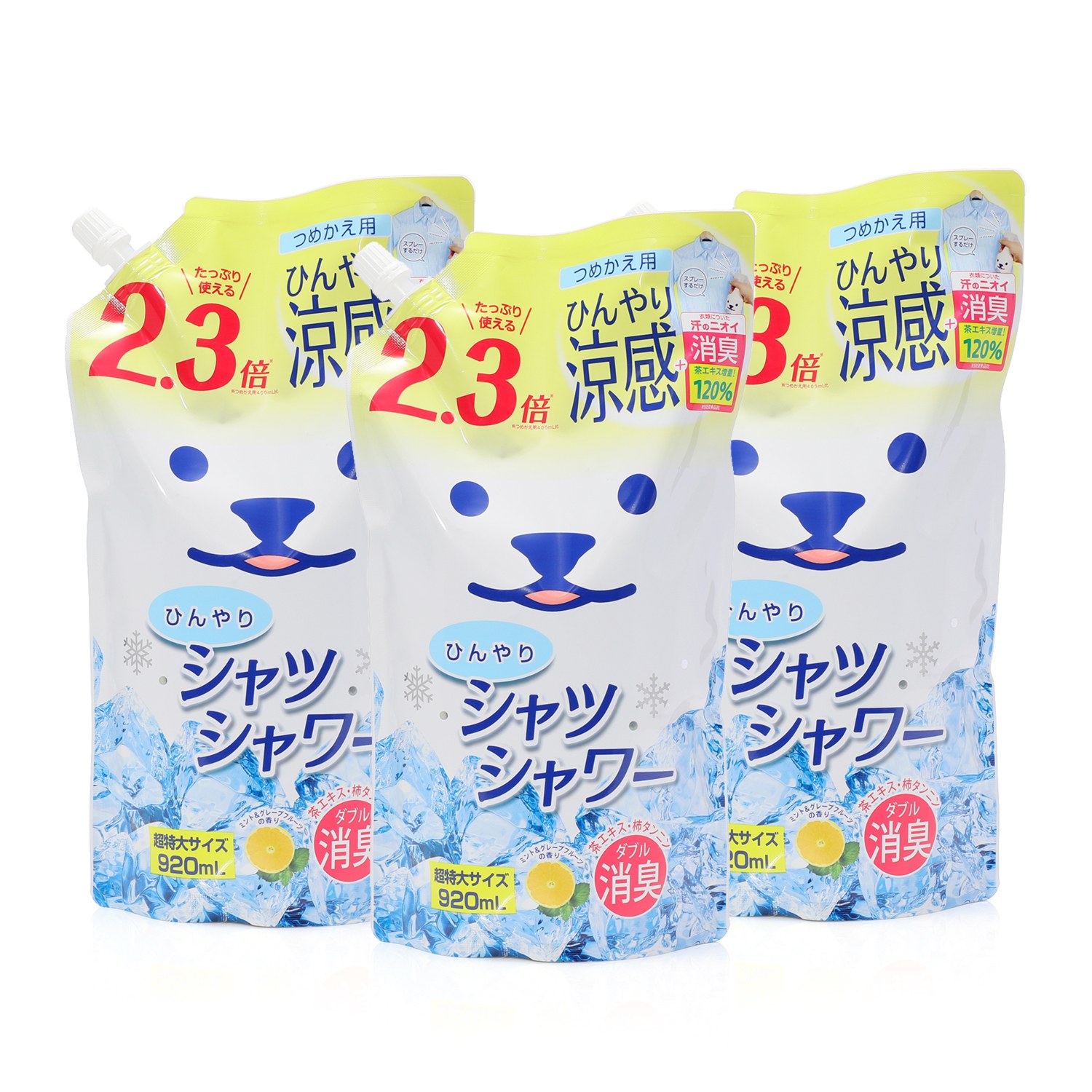 スプレーするだけの 涼感 消臭対策 ひんやりシャツシャワー 詰め替え用超特大パウチ 3袋セット ショップチャンネル