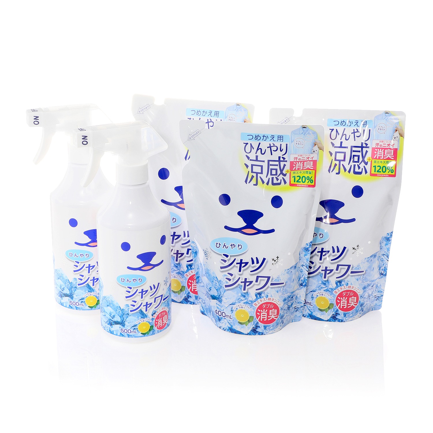 スプレーするだけの 涼感 消臭対策 ひんやりシャツシャワー つめかえ用超特大パウチ付 特別セット ショップチャンネル